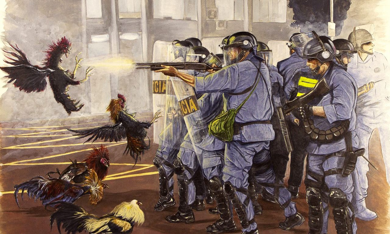 Nascido em Moçambique e radicado no Rio de Janeiro, Gunga Guerra é a escolha da equipe curatorial da Dasartes para o Concurso Garimpo de 2018. Por meio de pinturas e instalações, Gunga trata de temas atuais como conflitos urbanos, manifestações e a crise de refugiados.