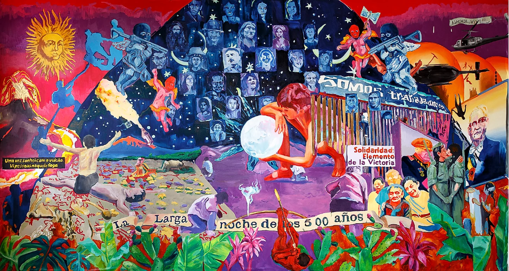 Igualmente feroz em seus trabalhos, Marcela Cantuaria dedica-se à pintura figurativa e à construção de alegorias. Seus trabalhos desconstroem narrativas hegemônicas e se colocam como maneiras de lidar com traumas coloniais e a violência do mundo contemporâneo. Entre as personagens de suas pinturas, destacam-se mulheres guerrilheiras e militantes da América Latina, que tiveram suas trajetórias interrompidas devido a perseguições e assassinatos. Atravessada pelo atual regime de visualidade, Marcela é inovadora ao se relacionar com um dos mais tradicionais meios de expressão artística – a pintura – e um de seus gêneros mais sacramentados – a pintura histórica.