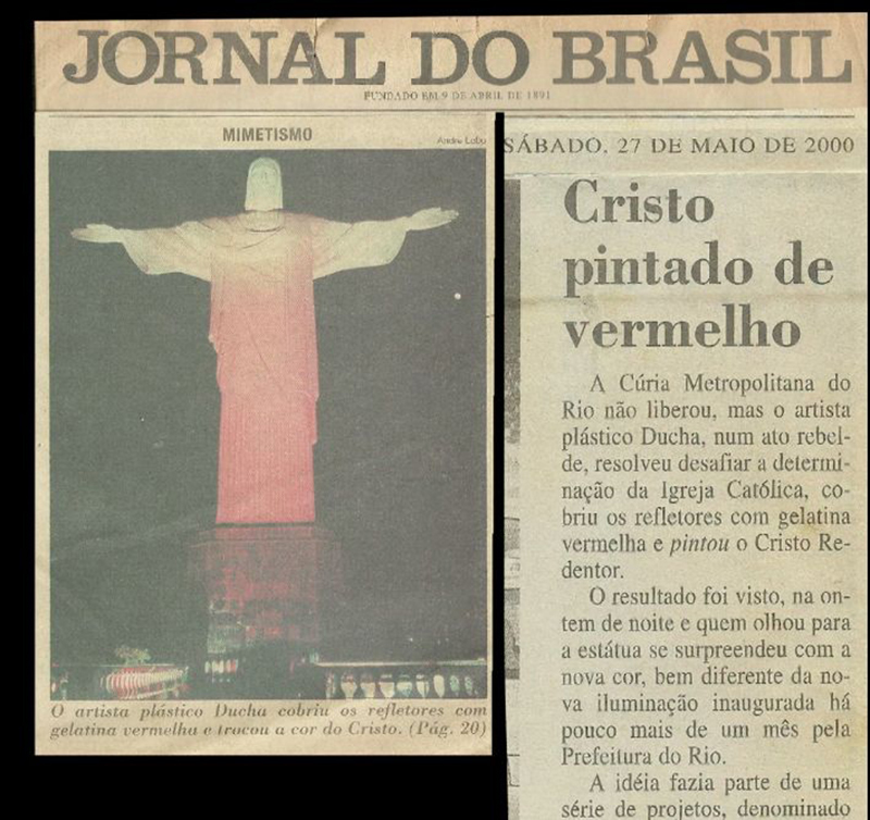“A Cúria Metropolitana do Rio não liberou, mas o artista plástico Ducha, num ato rebelde, resolveu desafiar a determinação da Igreja Católica, cobriu os refletores com gelatina vermelha e pintou o Cristo Redentor”. [11]