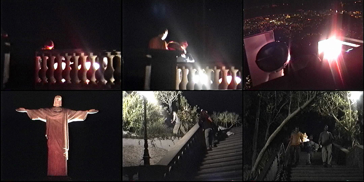 “Quando chegamos no pátio aos pés da estátua, os últimos visitantes estavam de saída. Ducha imediatamente se meteu no mato e passamos para ele as gelatinas já recortadas no tamanho e forma dos spots e mais a fita adesiva própria para as gelatinas. Foi tudo bem rápido e um pouco tenso, apesar de serem muitos holofotes a receber a gelatina. Diria que tudo não passou de 15 minutos, e ao final das últimas aplicações já podíamos ver a estátua se tingindo de vermelho claro. Saímos como entramos, rápidos e sem levantar suspeitas, e fomos para o mirante Dona Marta apreciar o resultado da ação, onde já estava o Arthur Leandro com sua câmera”. [6]