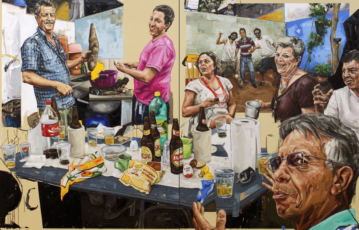 Ao lado desses jovens nomes, figuram artistas de diferentes gerações: representantes do final do século XIX e início do século XX, interessados em retratar o cotidiano do Rio de Janeiro e de suas moradias, influenciados pelo realismo, impressionismo, e outras tendências europeias, como Eliseu Visconti e Gustavo Dall’Ara; aclamados nomes da gravura moderna e de preocupação social, como Oswaldo Goeldi e Renina Katz; pintores-cronistas dos costumes populares, como Heitor dos Prazeres, Djanira, Maria Auxiliadora e Manezinho Araújo; diferentes gerações da videoarte, de Leticia Parente a Sara Ramo, estas concentradas na figura da mulher em ambiente íntimo e doméstico; a vontade construtiva de Lygia Pape, Lygia Clark e Hélio Oiticica; notáveis artistas que emergiram no final do século XX, como Adriana Varejão, Márcia X, Rosana Paulino e Luiz Zerbini, além de artistas que se destacaram a partir dos anos 2000, como Lucia Laguna, Joana Traub Csëko e Daniel Murgel. Não é possível deixar de mencionar a série documental realizada pela produtora de audiovisual Três Marias, com emocionantes depoimentos de habitantes do Rio de Janeiro sobre suas histórias envolvendo o lar, assim como os vídeos montados por Joana Collier com cenas do cinema brasileiro que dialogam com os núcleos da exposição. Esse feliz encontro de gerações, sem hierarquizações ou divisões cronológicas, soma aproximadamente 600 peças, entre obras de arte e documentações.