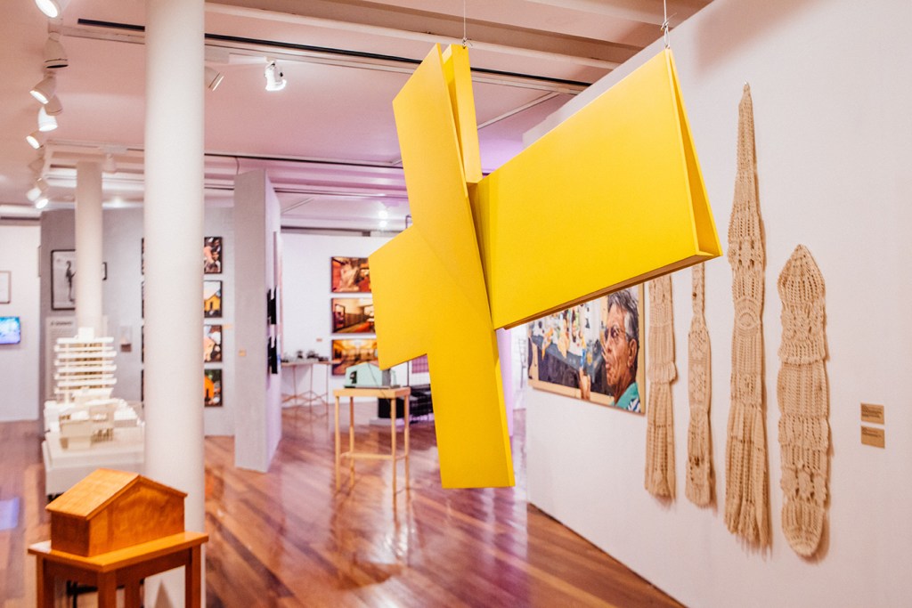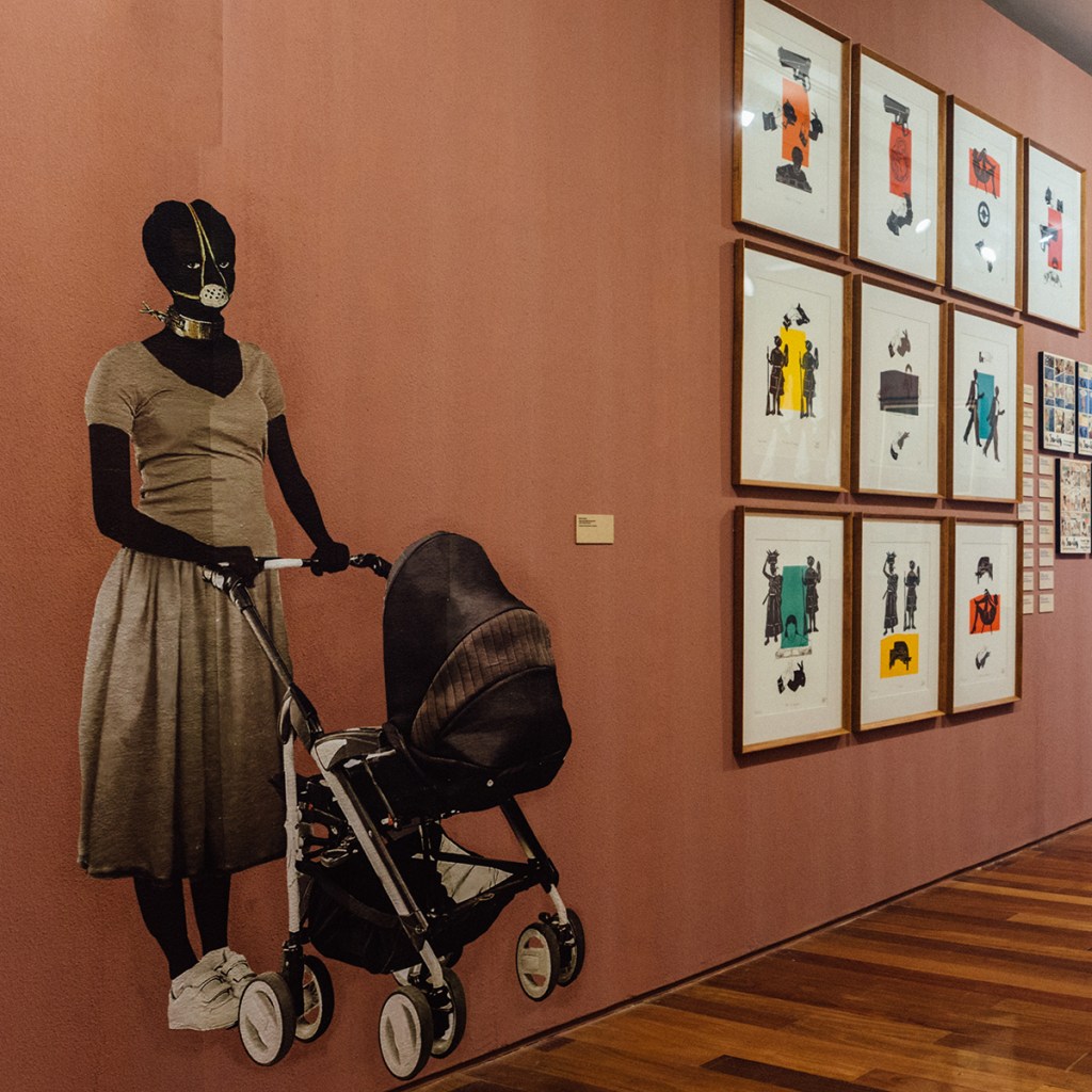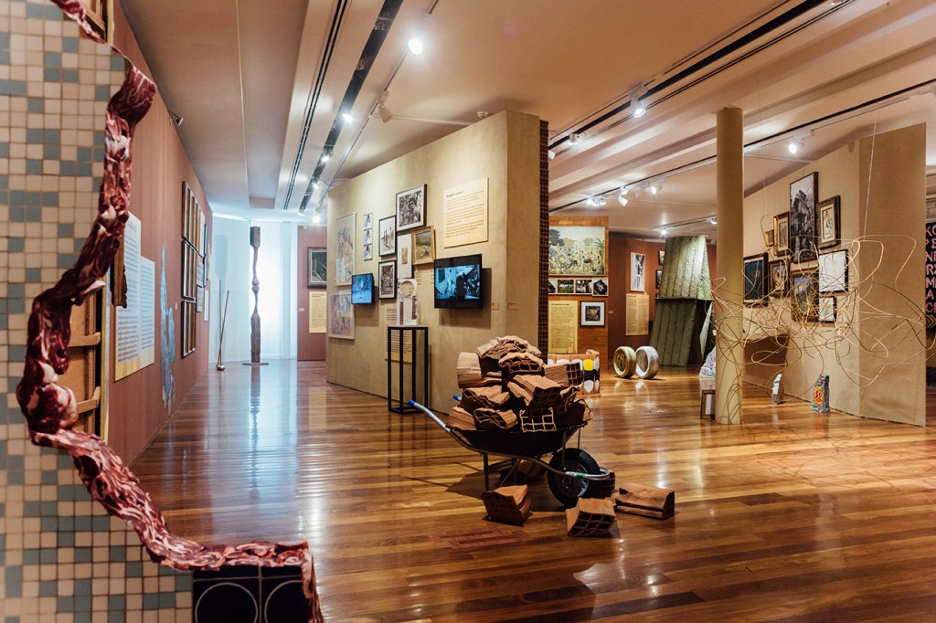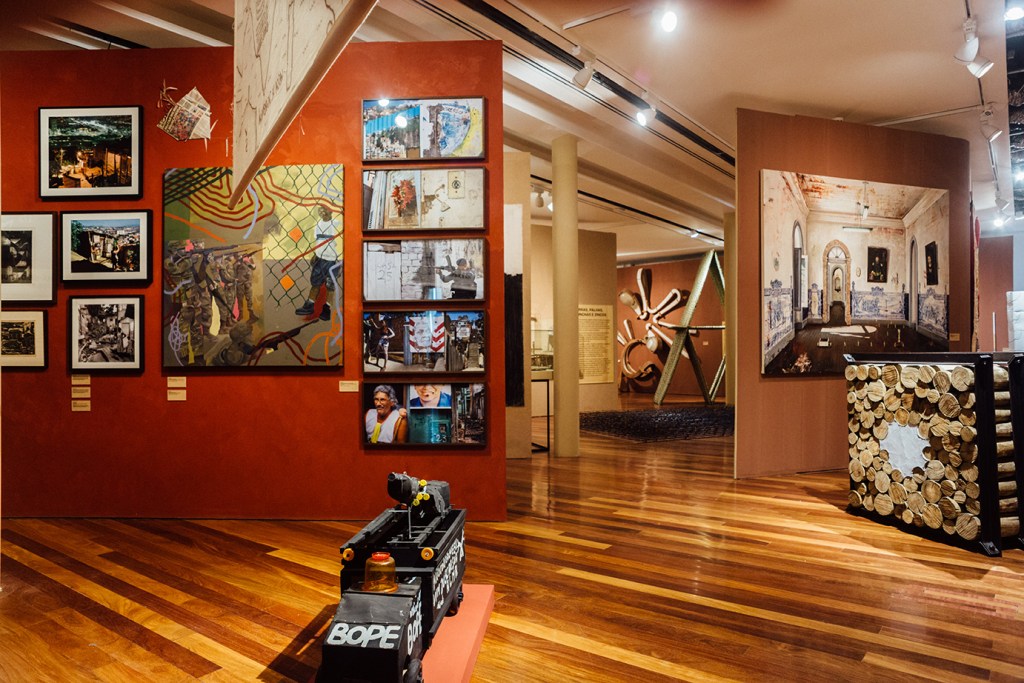 Antes de tecer comentários sobre a seleção de artistas que compõem a exposição, devo destacar o projeto feito pelo diretor de arte Valdy Lopes para a expografia de Casa Carioca. O trabalho expográfico produz um ambiente imersivo, onde as paredes, por si só, contam histórias. Os discursos enunciados pelas obras da exposição ecoam de uma maneira que não seria possível se inseridos na estrutura neutralizadora de um “cubo branco”, mais recorrente em ambientes expositivos.