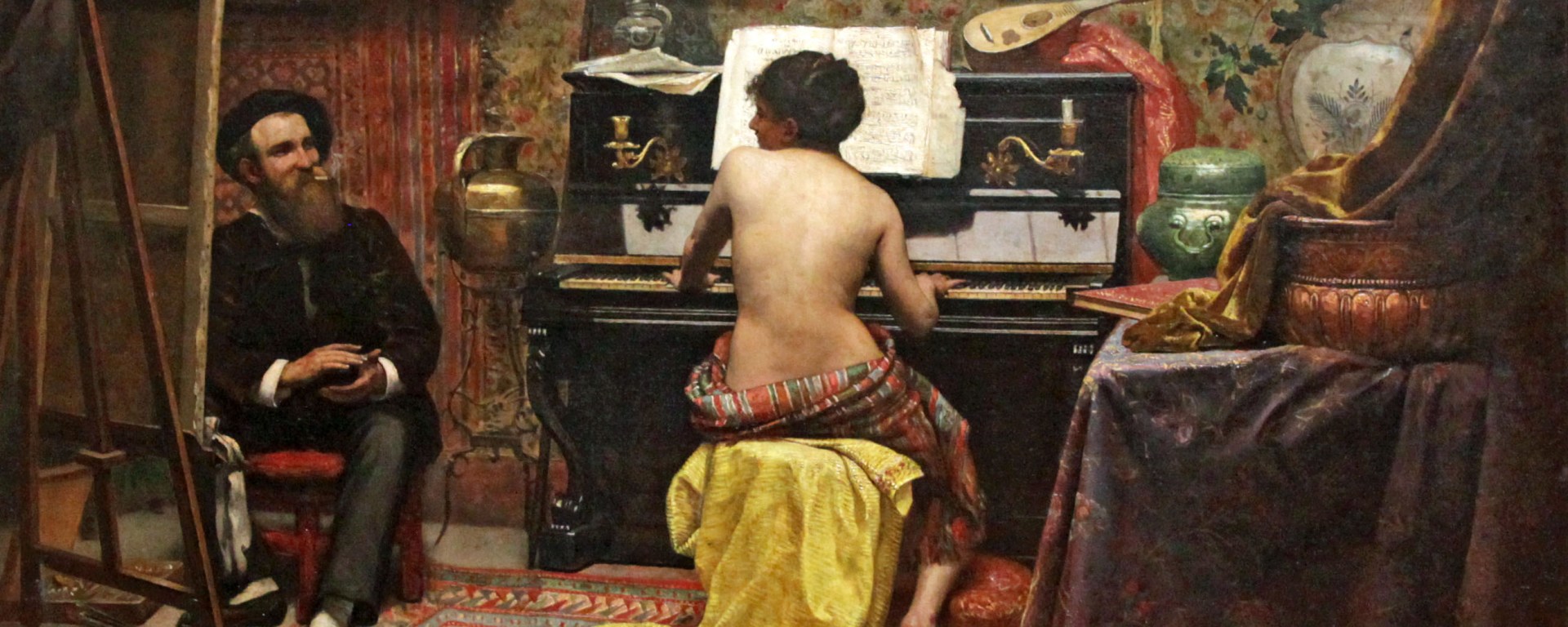 “O descanso do modelo”, de Almeida Júnior, foi louvado pela crítica por sua naturalidade e graciosidade. Seu sucesso marca uma mudança de gosto no público carioca, antes excitado por cenas de batalhas e de grandes efemérides, agora se interessa mais por cenas íntimas e “verdadeiras”, que, além disso, estimulem sua imaginação, convidando-o a interagir e completar a cena pintada – como sugere a pesquisadora Ana Cavalcanti em um artigo sobre a EGBA de 1884. Não vemos a tela abandonada pelo pintor, nem ouvimos o som da música, nem temos a visão frontal da figura feminina nua. Há uma mudança de papéis: a modelo, que toca o piano, coloca-se na posição de artista, enquanto o pintor pausa sua atividade para contemplá-la. Ainda assim, ela não deixa de ser uma “musa” ou objeto de um voyeur masculino. Compreendemos que a situação é temporária, um momento lúdico, de descontração.